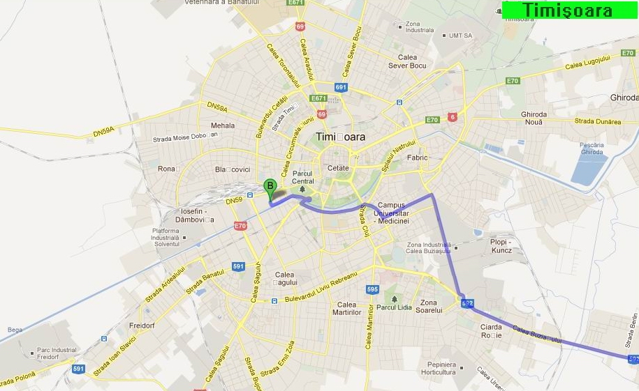 Intrarea în Timișoara se face pe Calea Buziașului/DJ592 |