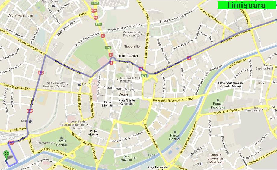 Intrarea în Timișoara se face pe Calea Lugojului/DN6/E70.